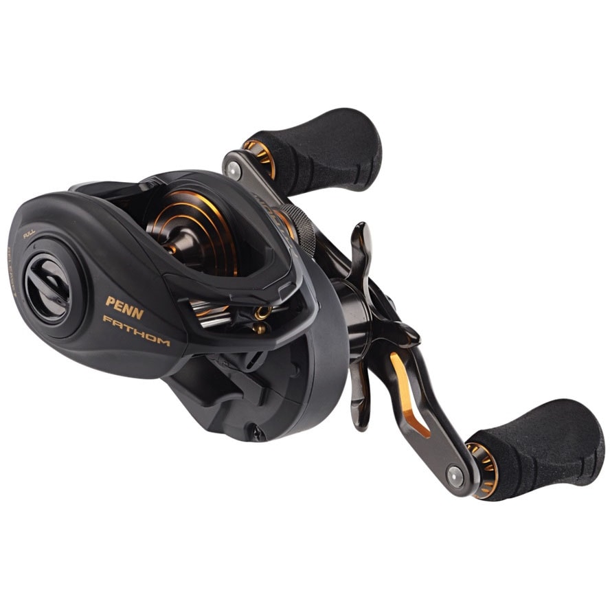 PENN® Fathom lågprofilrullar har alla funktioner du behöver för att ta itu med den tuffaste fisken i havet. Kropp och höger sidogavel är helt i metall, detta matchat med huvuddrev och växel i mässing ger en drivning med oöverträffad kraft. Finns i storlekarna 200, 300 och 400 för att passa just ditt predatorfiske.