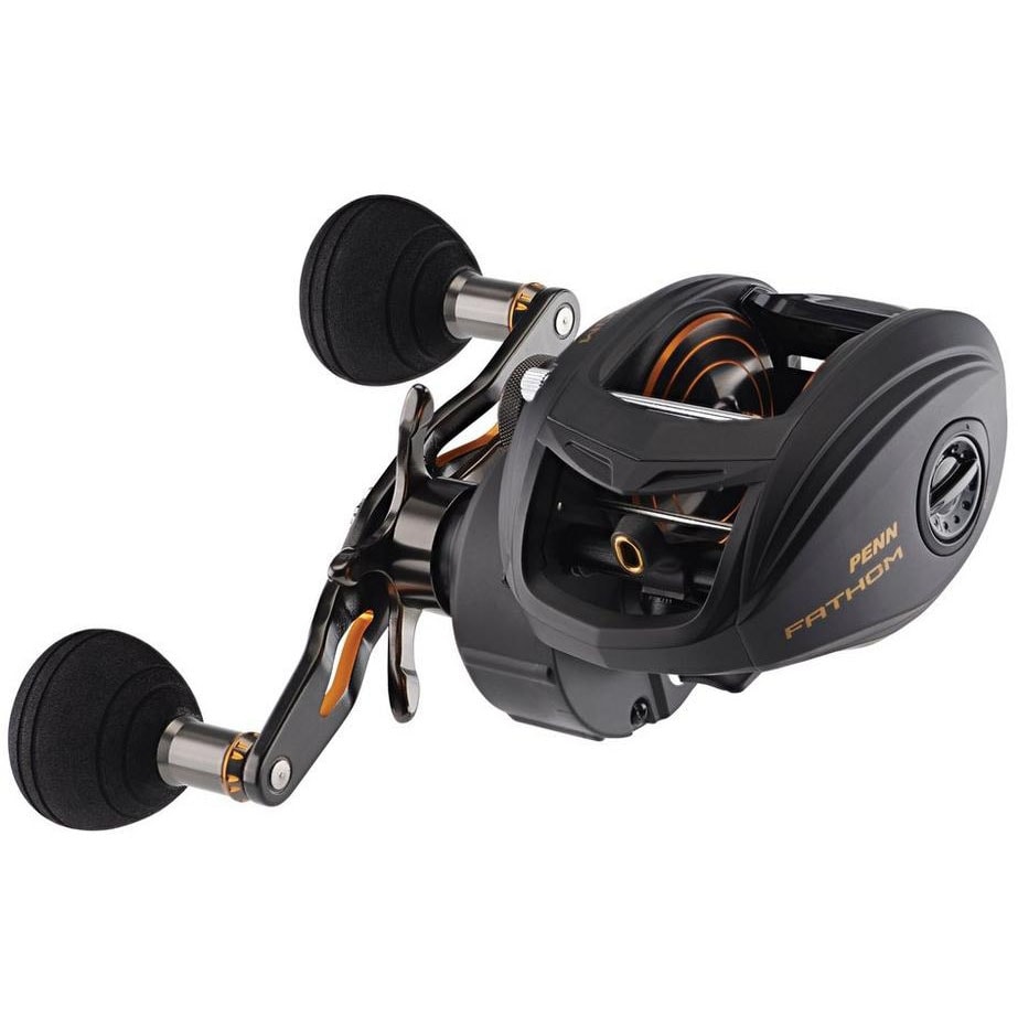 PENN® Fathom lågprofilrullar har alla funktioner du behöver för att ta itu med den tuffaste fisken i havet. Kropp och höger sidogavel är helt i metall, detta matchat med huvuddrev och växel i mässing ger en drivning med oöverträffad kraft, medan ett titanbeklätt Level Wind-system och Synchronized Drag and Level Wind-systemet (endast 400-storlek) ger extra hållbarhet under stor påfrestning. Finns i storlekarna 200, 300 och 400 för att passa just ditt predatorfiske.